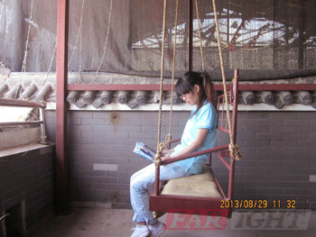 | 圖五、學員分組活動:搓麻將 | 圖六、坐在秋千椅上看書多愜意 |