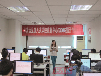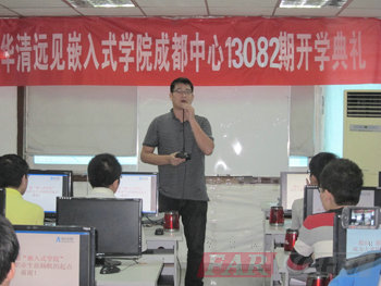 2013年9月(yue)2日,華(hua)清遠見成都(dou)中(zhong)心(xin)(xin)迎來了13082期(qi)的全(quan)(quan)體(ti)學員(yuan)。當天上午,13082期(qi)開(kai)(kai)學典禮在成都(dou)中(zhong)心(xin)(xin)所在的四川大學大學科技園嵌(qian)入式實(shi)驗室三隆重舉(ju)行。成都(dou)中(zhong)心(xin)(xin)校長陶老師(shi)(shi)(shi),學術經理潘老師(shi)(shi)(shi),教學部(bu)馮(feng)老師(shi)(shi)(shi),就業專(zhuan)員(yuan)龔老師(shi)(shi)(shi),班主(zhu)任(ren)李(li)老師(shi)(shi)(shi)以及13082期(qi)全(quan)(quan)體(ti)學員(yuan)出席了本次開(kai)(kai)學典禮。