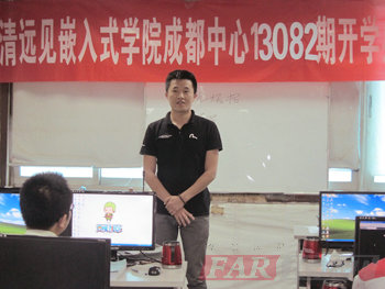 其次(ci),華(hua)清遠見(jian)成都中(zhong)心學(xue)術經理(li)潘(pan)老(lao)師詳細的(de)為大(da)家講解了本次(ci)嵌入式四(si)(si)個月(yue)培訓的(de)課程安排(pai)及重(zhong)點內(nei)容。他反(fan)復強調了掌握正確學(xue)習方(fang)法的(de)重(zhong)要(yao)性,要(yao)求(qiu)在(zai)四(si)(si)個月(yue)的(de)學(xue)習中(zhong)同(tong)學(xue)們(men)應該快速的(de)定位,找到(dao)適合自己的(de)學(xue)習方(fang)法,并且要(yao)求(qiu)學(xue)員們(men)通過四(si)(si)個月(yue)的(de)學(xue)習掌握到(dao)扎實的(de)基(ji)礎知識(shi),在(zai)實際運用中(zhong)去積(ji)累,多跟老(lao)師交流。他希望大(da)家在(zai)四(si)(si)個月(yue)的(de)學(xue)習中(zhong)勤奮上進,積(ji)累人生中(zhong)重(zhong)要(yao)的(de)一筆財富。