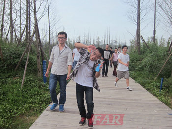 午餐過后,休息(xi)了(le)(le)半個(ge)小時(shi),我(wo)們沿著賞荷(he)(he)路(lu),前往濕地(di)公園。夏已盡,蓮(lian)蓬探出了(le)(le)水(shui)面,但荷(he)(he)花還(huan)沒有(you)(you)完全凋謝,睡蓮(lian)還(huan)美(mei)美(mei)的(de)(de)(de)躺在水(shui)上,有(you)(you)紅色的(de)(de)(de)蜻蜓立在荷(he)(he)葉上,引來不(bu)少學員(yuan)圍觀,拿出相機抓拍,小家伙很(hen)配合(he),一(yi)動(dong)不(bu)動(dong),有(you)(you)學員(yuan)懷疑它的(de)(de)(de)生命狀(zhuang)態,伸(shen)手捧起水(shui)灑向(xiang)它,由于受到(dao)了(le)(le)驚嚇(xia),蜻蜓急急的(de)(de)(de)飛走了(le)(le),這(zhe)時(shi)還(huan)在認(ren)真拍照的(de)(de)(de)學員(yuan)對剛剛灑水(shui)的(de)(de)(de)學員(yuan)表示不(bu)滿,而他卻(que)擺(bai)好(hao)POSE,說(shuo)到(dao):“別生氣了(le)(le),大(da)不(bu)了(le)(le)我(wo)委屈點(dian)兒,讓你拍好(hao)了(le)(le)。”俏(qiao)皮的(de)(de)(de)話語、生動(dong)的(de)(de)(de)表情把周(zhou)圍的(de)(de)(de)學員(yuan)都逗(dou)樂了(le)(le),又(you)有(you)(you)幾個(ge)學員(yuan)加入,笑著說(shuo)到(dao):“好(hao)啊(a),好(hao)啊(a),我(wo)們也來吧!”就(jiu)這(zhe)樣,大(da)家一(yi)路(lu)上有(you)(you)說(shuo)有(you)(you)笑,趣事不(bu)斷。
