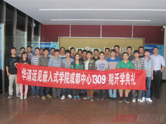 2013年10月8日(ri),華(hua)清遠見成(cheng)(cheng)(cheng)都(dou)中心(xin)(xin)迎(ying)來了1309期(qi)的(de)全(quan)體學(xue)(xue)(xue)(xue)員。當(dang)天上午,1309期(qi)開(kai)學(xue)(xue)(xue)(xue)典(dian)禮(li)在成(cheng)(cheng)(cheng)都(dou)中心(xin)(xin)所在的(de)四川(chuan)大(da)學(xue)(xue)(xue)(xue)大(da)學(xue)(xue)(xue)(xue)科(ke)技園嵌入式實驗室一隆重舉行。成(cheng)(cheng)(cheng)都(dou)中心(xin)(xin)校長陶老(lao)(lao)(lao)師,學(xue)(xue)(xue)(xue)術(shu)經理潘老(lao)(lao)(lao)師,教(jiao)學(xue)(xue)(xue)(xue)部馮(feng)老(lao)(lao)(lao)師,就業專(zhuan)員龔(gong)老(lao)(lao)(lao)師,班主任(ren)李老(lao)(lao)(lao)師以及(ji)1309期(qi)全(quan)體學(xue)(xue)(xue)(xue)員出席(xi)了本次開(kai)學(xue)(xue)(xue)(xue)典(dian)禮(li)。