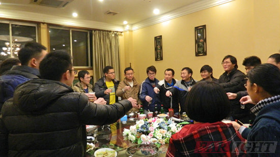 盡情(qing)揮(hui)灑了(le)幾個小(xiao)時,真心累(lei)了(le)。三五成群的(de)坐在(zai)一塊休(xiu)息(xi)下,喝著水,吃著零食,閑聊著,打(da)鬧著......夜幕(mu)快(kuai)要降臨,大(da)家肚子早就(jiu)餓的(de)咕咕叫了(le)。火速來(lai)到飯(fan)(fan)桌前,準備(bei)開始大(da)快(kuai)朵頤!怎奈飯(fan)(fan)菜上來(lai)的(de)速度實(shi)在(zai)太慢,大(da)家先(xian)來(lai)舉杯喝杯酒吧!為前世(shi)無數次的(de)回眸(mou)換(huan)來(lai)的(de)緣分(fen),今天珍貴的(de)同(tong)窗之情(qing),對彼此(ci)前程的(de)祝福,還有(you)未(wei)來(lai)將會到來(lai)的(de)分(fen)別(bie),太多(duo)的(de)情(qing)感(gan)需要表達,讓我(wo)們舉起這杯酒,將所有(you)的(de)祝福留在(zai)心中!