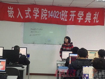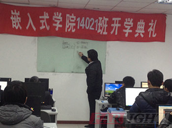 接著是上(shang)海(hai)中心(xin)校長王(wang)(wang)老(lao)師為典禮致辭。王(wang)(wang)老(lao)師首先為大家介紹為什么學習(xi)(xi)(xi)嵌(qian)(qian)入(ru)式(shi),嵌(qian)(qian)入(ru)式(shi)技(ji)術(shu)(shu)是未來(lai)十(shi)年信息產(chan)業(ye)(ye)的(de)(de)(de)(de)基礎!“后嵌(qian)(qian)入(ru)式(shi)”時(shi)代已(yi)來(lai)臨,“未來(lai)技(ji)術(shu)(shu)”離(li)不開嵌(qian)(qian)入(ru)式(shi),學員對(dui)(dui)嵌(qian)(qian)入(ru)式(shi)行業(ye)(ye)充(chong)滿了信心(xin)。王(wang)(wang)老(lao)師對(dui)(dui)華(hua)(hua)清(qing)遠(yuan)(yuan)見(jian)(jian)(jian)教育科(ke)技(ji)集(ji)團(tuan)的(de)(de)(de)(de)文化、發展歷程及(ji)授權合(he)作(zuo)單位進(jin)(jin)行了簡短的(de)(de)(de)(de)介紹,華(hua)(hua)清(qing)遠(yuan)(yuan)見(jian)(jian)(jian)具有早(zao)、專(zhuan)注(zhu)(zhu)、系(xi)統與權威的(de)(de)(de)(de)優勢(shi),就因為這(zhe)些(xie)優勢(shi),學員選擇到(dao)(dao)華(hua)(hua)清(qing)遠(yuan)(yuan)見(jian)(jian)(jian)來(lai)上(shang)課(ke),這(zhe)說明(ming)我(wo)們(men)(men)華(hua)(hua)清(qing)遠(yuan)(yuan)見(jian)(jian)(jian)是值得信賴(lai)的(de)(de)(de)(de)。然后介紹了我(wo)們(men)(men)華(hua)(hua)清(qing)遠(yuan)(yuan)見(jian)(jian)(jian)教育科(ke)技(ji)集(ji)團(tuan)成立(li)的(de)(de)(de)(de)背景以及(ji)華(hua)(hua)清(qing)遠(yuan)(yuan)見(jian)(jian)(jian)教育科(ke)技(ji)集(ji)團(tuan)的(de)(de)(de)(de)優勢(shi),強大的(de)(de)(de)(de)師資團(tuan)隊、實(shi)用的(de)(de)(de)(de)課(ke)程體(ti)系(xi)、權威的(de)(de)(de)(de)認(ren)證體(ti)系(xi)、支持(chi)高校嵌(qian)(qian)入(ru)式(shi)學科(ke)建設、構建企業(ye)(ye)人才培(pei)養標(biao)準和全國范圍的(de)(de)(de)(de)就業(ye)(ye)服務體(ti)系(xi),并(bing)對(dui)(dui)當前(qian)普(pu)遍(bian)關注(zhu)(zhu)的(de)(de)(de)(de)熱點“物聯網”、“云(yun)計(ji)算(suan)””等進(jin)(jin)行了逐一(yi)的(de)(de)(de)(de)分(fen)析,并(bing)舉(ju)例我(wo)們(men)(men)華(hua)(hua)清(qing)遠(yuan)(yuan)見(jian)(jian)(jian)對(dui)(dui)一(yi)些(xie)傳統企業(ye)(ye)進(jin)(jin)行內訓(xun)的(de)(de)(de)(de)技(ji)術(shu)(shu)點等讓大家能(neng)夠充(chong)分(fen)感(gan)受(shou)到(dao)(dao)嵌(qian)(qian)入(ru)式(shi)行業(ye)(ye)的(de)(de)(de)(de)優勢(shi)和迅猛發展的(de)(de)(de)(de)現(xian)狀(zhuang)。同(tong)(tong)時(shi)王(wang)(wang)老(lao)師鼓勵14021期的(de)(de)(de)(de)學員要(yao)努力學習(xi)(xi)(xi),充(chong)分(fen)調(diao)動起自(zi)己(ji)的(de)(de)(de)(de)興趣和學習(xi)(xi)(xi)積極(ji)性,在(zai)華(hua)(hua)清(qing)遠(yuan)(yuan)見(jian)(jian)(jian)各位老(lao)師的(de)(de)(de)(de)幫(bang)助下(xia),真(zhen)正達到(dao)(dao)學有所(suo)成,終成為一(yi)名合(he)格的(de)(de)(de)(de)嵌(qian)(qian)入(ru)式(shi)工(gong)程師。后王(wang)(wang)老(lao)師也給每位同(tong)(tong)學提(ti)出了幾點希望(wang)(wang),希望(wang)(wang)同(tong)(tong)學們(men)(men)能(neng)夠迅速找(zhao)到(dao)(dao)適合(he)自(zi)己(ji)的(de)(de)(de)(de)學習(xi)(xi)(xi)方法,真(zhen)正做到(dao)(dao)有質有量的(de)(de)(de)(de)學習(xi)(xi)(xi)。