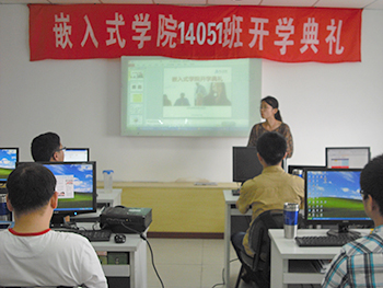 接下來(lai)(lai)上海中(zhong)心校(xiao)長王老(lao)師(shi)為開學(xue)典禮致辭(ci)。王老(lao)師(shi)首先為大(da)(da)(da)家介紹為什么學(xue)習(xi)嵌入(ru)(ru)式(shi)(shi)(shi),嵌入(ru)(ru)式(shi)(shi)(shi)技(ji)(ji)(ji)術(shu)是(shi)未來(lai)(lai)十年(nian)信息產業(ye)的(de)(de)(de)(de)(de)基礎(chu)!“后(hou)嵌入(ru)(ru)式(shi)(shi)(shi)”時(shi)代已來(lai)(lai)臨,“未來(lai)(lai)技(ji)(ji)(ji)術(shu)”離(li)不開嵌入(ru)(ru)式(shi)(shi)(shi),學(xue)員(yuan)對(dui)嵌入(ru)(ru)式(shi)(shi)(shi)行(xing)業(ye)充(chong)滿了(le)信心。王老(lao)師(shi)對(dui)華清(qing)遠見(jian)(jian)(jian)教(jiao)育科(ke)技(ji)(ji)(ji)集(ji)團(tuan)的(de)(de)(de)(de)(de)文化、發(fa)展歷程及授權合作單位(wei)(wei)進行(xing)了(le)簡短的(de)(de)(de)(de)(de)介紹,華清(qing)遠見(jian)(jian)(jian)具有(you)早、專注、系統與權威的(de)(de)(de)(de)(de)優勢(shi),就因為這些優勢(shi),學(xue)員(yuan)選(xuan)擇到華清(qing)遠見(jian)(jian)(jian)來(lai)(lai)上課(ke),這說明我(wo)們(men)華清(qing)遠見(jian)(jian)(jian)是(shi)值得(de)信賴的(de)(de)(de)(de)(de)。然后(hou)介紹了(le)我(wo)們(men)華清(qing)遠見(jian)(jian)(jian)教(jiao)育科(ke)技(ji)(ji)(ji)集(ji)團(tuan)成立(li)的(de)(de)(de)(de)(de)背景以(yi)及華清(qing)遠見(jian)(jian)(jian)教(jiao)育科(ke)技(ji)(ji)(ji)集(ji)團(tuan)的(de)(de)(de)(de)(de)優勢(shi),強大(da)(da)(da)的(de)(de)(de)(de)(de)師(shi)資團(tuan)隊、實(shi)用的(de)(de)(de)(de)(de)課(ke)程體(ti)系、權威的(de)(de)(de)(de)(de)認證體(ti)系、支持高校(xiao)嵌入(ru)(ru)式(shi)(shi)(shi)學(xue)科(ke)建(jian)(jian)設、構建(jian)(jian)企業(ye)人才培養標(biao)準和全國(guo)范圍的(de)(de)(de)(de)(de)就業(ye)服務體(ti)系,并(bing)對(dui)當(dang)前(qian)普遍關(guan)注的(de)(de)(de)(de)(de)熱點(dian)“物(wu)聯網”、“云計算”等進行(xing)了(le)逐一的(de)(de)(de)(de)(de)分析,并(bing)舉(ju)例我(wo)們(men)華清(qing)遠見(jian)(jian)(jian)對(dui)一些傳統企業(ye)進行(xing)內訓(xun)的(de)(de)(de)(de)(de)技(ji)(ji)(ji)術(shu)點(dian)等讓大(da)(da)(da)家能(neng)夠充(chong)分感受到嵌入(ru)(ru)式(shi)(shi)(shi)行(xing)業(ye)的(de)(de)(de)(de)(de)優勢(shi)和迅(xun)猛發(fa)展的(de)(de)(de)(de)(de)現狀。同(tong)時(shi)王老(lao)師(shi)鼓(gu)勵14051期的(de)(de)(de)(de)(de)學(xue)員(yuan)要努力學(xue)習(xi),充(chong)分調動起自己的(de)(de)(de)(de)(de)興趣和學(xue)習(xi)積極性,在華清(qing)遠見(jian)(jian)(jian)各位(wei)(wei)老(lao)師(shi)的(de)(de)(de)(de)(de)幫(bang)助下,真正(zheng)達到學(xue)有(you)所成,終(zhong)成為一名合格的(de)(de)(de)(de)(de)嵌入(ru)(ru)式(shi)(shi)(shi)工程師(shi)。后(hou)王老(lao)師(shi)也給(gei)每位(wei)(wei)同(tong)學(xue)提(ti)出了(le)幾點(dian)希望(wang),希望(wang)同(tong)學(xue)們(men)能(neng)夠迅(xun)速找到適合自己的(de)(de)(de)(de)(de)學(xue)習(xi)方法,真正(zheng)做到有(you)質有(you)量的(de)(de)(de)(de)(de)學(xue)習(xi)。
