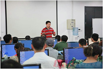 | 圖一、華清遠見教育科技集團的總裁季老師介紹培訓內容和目的 | 圖二、華清遠見教育科技集團的副總裁賈老師講話 |