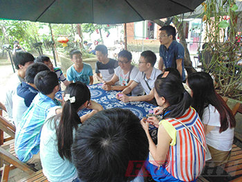 午飯后,大(da)(da)(da)家(jia)一(yi)(yi)(yi)(yi)起玩(wan)(wan)(wan)起了(le)(le)天(tian)黑請閉眼(yan)的(de)游戲,簡單的(de)給(gei)學(xue)員們介紹完(wan)規(gui)則后,各位玩(wan)(wan)(wan)家(jia)新(xin)手都迫(po)不及待的(de)躍(yue)(yue)躍(yue)(yue)欲試。在一(yi)(yi)(yi)(yi)輪輪的(de)游戲中,拉近了(le)(le)彼此(ci)間的(de)關系,也鍛煉(lian)了(le)(le)大(da)(da)(da)家(jia)的(de)思維和(he)表(biao)達能力。一(yi)(yi)(yi)(yi)部分(fen)人(ren)甚至玩(wan)(wan)(wan)上了(le)(le)癮(yin),遲(chi)遲(chi)不愿離開(kai),而另一(yi)(yi)(yi)(yi)部分(fen)學(xue)員,由老師(shi)帶領來到下一(yi)(yi)(yi)(yi)個活動場(chang)所,某KTV大(da)(da)(da)展歌(ge)喉。有(you)(you)獨唱(chang),有(you)(you)對唱(chang),有(you)(you)合唱(chang),有(you)(you)經典老歌(ge),有(you)(you)流行新(xin)曲,曲風(feng)各異(yi),而14061期的(de)王(wang)同學(xue)尤其擅長粵語歌(ge)曲,頗(po)有(you)(you)專場(chang)演唱(chang)會(hui)的(de)范兒。在一(yi)(yi)(yi)(yi)首(shou)我的(de)好兄(xiong)弟中大(da)(da)(da)家(jia)結束了(le)(le)一(yi)(yi)(yi)(yi)天(tian)的(de)活動。