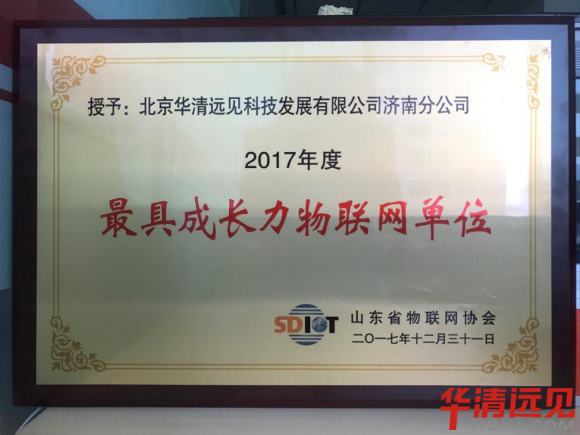 經過評選(xuan)委員(yuan)會的(de)綜合考評,最終確定:北京華(hua)清遠見(jian)科技集團有限公(gong)司濟南分公(gong)司榮獲(huo)2017年度最具成長力物聯網單(dan)位、山東省2017年度物聯網產業最受關(guan)注單(dan)位、2017年度十(shi)佳物聯網解決(jue)方案多項(xiang)榮譽。