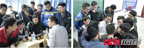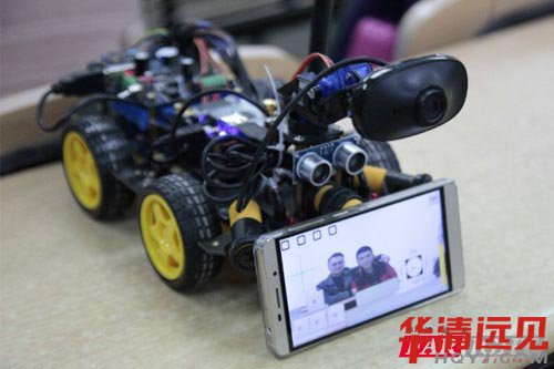 本(ben)次活動大的(de)主(zhu)角莫過于(yu)華(hua)(hua)清遠(yuan)(yuan)見自主(zhu)研發的(de)智(zhi)能(neng)(neng)小(xiao)車(che),這款小(xiao)車(che)說起來那可真是(shi)不簡單!在華(hua)(hua)清遠(yuan)(yuan)見嵌(qian)入式課堂上就已(yi)經受(shou)到了眾多學(xue)員的(de)追捧(peng)。用戶(hu)不僅能(neng)(neng)利(li)用Android手(shou)機通過無(wu)(wu)線網(wang)絡控(kong)制小(xiao)車(che)移動、轉(zhuan)向,還(huan)能(neng)(neng)通過攝像頭采集視頻流,實時顯示在手(shou)機客戶(hu)端;通過Android手(shou)機控(kong)制端界面(mian)相(xiang)應操作進行(xing)拍照,使用存(cun)儲設備進行(xing)存(cun)儲。在現場(chang),華(hua)(hua)清遠(yuan)(yuan)見講(jiang)師苗老師首先向大家展示智(zhi)能(neng)(neng)小(xiao)車(che)的(de)強大功能(neng)(neng),然(ran)后結合Linux、Andriod、嵌(qian)入式軟硬件開(kai)發等(deng)技術,進行(xing)了細致生動地(di)講(jiang)解,并向大家介(jie)紹了當(dang)前市場(chang)上相(xiang)關的(de)產品及設計趨勢。苗老師還(huan)介(jie)紹說,華(hua)(hua)清遠(yuan)(yuan)見目前已(yi)經開(kai)發出(chu)了智(zhi)能(neng)(neng)手(shou)表、智(zhi)能(neng)(neng)小(xiao)車(che)、智(zhi)能(neng)(neng)手(shou)環、四(si)旋(xuan)翼飛行(xing)器、智(zhi)能(neng)(neng)電視機頂盒等(deng)一系列智(zhi)能(neng)(neng)產品,并已(yi)經投入到教(jiao)學(xue)中,通過真正的(de)產品來學(xue)習開(kai)發,讓學(xue)習更(geng)有趣。同學(xue)們聽的(de)十(shi)分(fen)投入,并親手(shou)操縱小(xiao)車(che)感受(shou)其無(wu)(wu)窮的(de)樂趣。