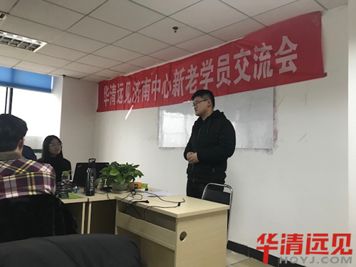 |   濟南華清優秀學員返校演講 致人生致青春  時間(jian):2018-01-23作者:華(hua)清(qing)遠(yuan)見(jian) 每張年輕(qing)的(de)臉上都(dou)寫滿了朝氣(qi)和對未來的(de)憧憬,是的(de),我們都(dou)很年輕(qing),有(you)(you)著“不(bu)到長城(cheng)非好漢”的(de)豪情(qing)壯志;有(you)(you)著“山高無頂我為峰(feng)”的(de)霸氣(qi);有(you)(you)著“普天之(zhi)下,舍(she)我其誰”的(de)雄心(xin),但我們缺乏實力,所以(yi)在(zai)我們夢開始(shi)的(de)地方,需要(yao)他們的(de)一臂之(zhi)力。心(xin)聲交流(liu),夢想起航(hang),在(zai)各位老(lao)師的(de)組織以(yi)及各位學員(yuan)的(de)配(pei)合(he)下華清(qing)遠見濟南(nan)中心(xin)新(xin)老(lao)學員(yuan)交流(liu)會于1月(yue)21日上午成功舉辦(ban)。