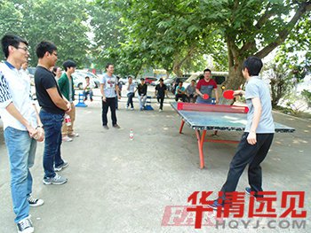 9點整,大家到(dao)達(da)體育館(guan),簡單分(fen)組(zu)后(hou)(hou),開始了乒 乓球友誼(yi)賽(sai)(sai)。全體參(can)與的乒乓球賽(sai)(sai),場面熱鬧也(ye)緊(jin)張。首先(xian)進(jin)(jin)行(xing)(xing)的是淘汰賽(sai)(sai),分(fen)兩組(zu)進(jin)(jin)行(xing)(xing)。兩組(zu)分(fen)別決(jue)出前(qian)兩名,然后(hou)(hou)和另一組(zu)的前(qian)兩名進(jin)(jin)行(xing)(xing)四(si)分(fen)之一賽(sai)(sai)。后(hou)(hou)是決(jue) 賽(sai)(sai)。三局兩勝,以(yi)11分(fen)定勝負。有(you)的參(can)賽(sai)(sai)隊員在比賽(sai)(sai)前(qian)已經有(you)了熱身準(zhun)備,很快進(jin)(jin)入(ru)了狀態,而另一些則還沒(mei)及(ji)時(shi)適應(ying)。所以(yi)在淘汰賽(sai)(sai)結束(shu)后(hou)(hou),一些感(gan)覺沒(mei)發揮出 水平的學員主動要求進(jin)(jin)行(xing)(xing)復活賽(sai)(sai)。經全體學員同意(yi)后(hou)(hou),又增加了復活賽(sai)(sai)。為了爭取(qu)進(jin)(jin)入(ru)四(si)分(fen)之一賽(sai)(sai),獲得復活機會的同學們可是小心翼翼,珍惜這來之不易的機會。