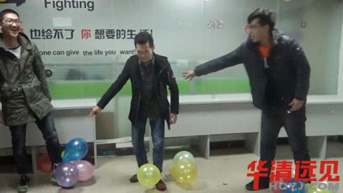 團(tuan)團(tuan)圓圓:6個人分(fen)為2隊都在左腳踝上綁著氣球,大(da)家(jia)(jia)踩破對(dui)方的(de)氣球,保護(hu)好(hao)自己的(de)氣球,游戲開始,競爭(zheng)還是很(hen)激烈(lie)的(de),大(da)家(jia)(jia)都互踩起來了。