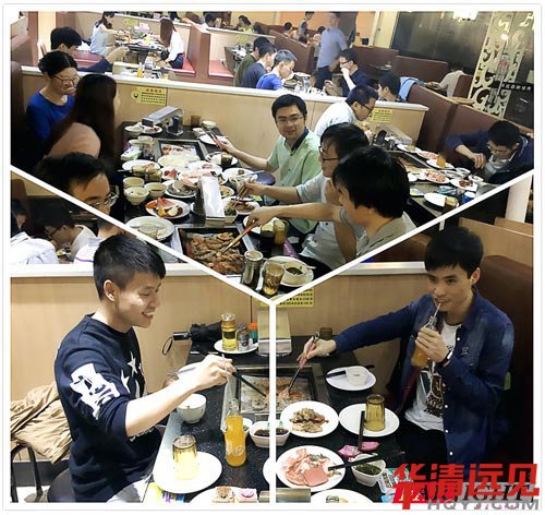 2016年4月(yue)15日下(xia)午6:00整,1601期學員們整裝待發。冒(mao)雨前行去深圳木(mu)槿花自助燒烤店共飲晚餐。