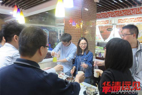 當天上(shang)(shang)午(wu)10:40,同學們(men)(men)(men)在(zai)西安中心三教室集合,大家(jia)都(dou)早(zao)早(zao)的(de)(de)(de)(de)坐在(zai)教室等待參加今天的(de)(de)(de)(de)班級(ji)活動。接下來(lai)在(zai)班主任的(de)(de)(de)(de)帶領下,同學們(men)(men)(men)路(lu)上(shang)(shang)有(you)說有(you)笑的(de)(de)(de)(de)步行(xing)至聚餐(can)的(de)(de)(de)(de)地方(fang)。到(dao)(dao)了之后(hou),我(wo)們(men)(men)(men)學員(yuan)有(you)序的(de)(de)(de)(de)進入飯店。安排好位子之后(hou),餓了一(yi)早(zao)上(shang)(shang)的(de)(de)(de)(de)同學們(men)(men)(men),開始各自(zi)找小伙伴們(men)(men)(men)一(yi)同去拿(na)吃的(de)(de)(de)(de),不到(dao)(dao)一(yi)小會功夫,桌子上(shang)(shang)擺(bai)滿了豐富的(de)(de)(de)(de)美(mei)食。我(wo)們(men)(men)(men)的(de)(de)(de)(de)趙同學很有(you)禮貌的(de)(de)(de)(de)給我(wo)們(men)(men)(men)老師也拿(na)吃的(de)(de)(de)(de),真的(de)(de)(de)(de)是(shi)暖男一(yi)個。在(zai)正式開餐(can)之前,為了慶祝(zhu)來(lai)自(zi)五湖四(si)海的(de)(de)(de)(de)大家(jia)來(lai)華清遠(yuan)見相聚的(de)(de)(de)(de)緣(yuan)分,同學們(men)(men)(men)舉杯共(gong)飲。