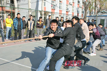 11月(yue)17日13時,在(zai)操場上如期(qi)(qi)舉(ju)行了(le)(le)本(ben)次運 動會的(de)(de)(de)第一(yi)天(tian)(tian)項目(mu)。首先(xian)是(shi)激烈的(de)(de)(de)拔(ba)河(he)比(bi)(bi)(bi)賽(sai)(sai)(sai)的(de)(de)(de)預(yu)賽(sai)(sai)(sai),通過(guo)前(qian)一(yi)天(tian)(tian)的(de)(de)(de)抽簽,由14091期(qi)(qi)VS 14074期(qi)(qi),14101期(qi)(qi)VS 14075期(qi)(qi)。比(bi)(bi)(bi)賽(sai)(sai)(sai)還沒有開(kai)始(shi),各班參(can)賽(sai)(sai)(sai)選手(shou)就開(kai)始(shi)摩拳擦(ca)掌,各班啦啦隊也都(dou)為自(zi)己的(de)(de)(de)班級加油助威。終(zhong),14074期(qi)(qi)與14075期(qi)(qi)獲勝(sheng),將(jiang)于(yu)明天(tian)(tian)爭奪(duo) 冠軍。拔(ba)河(he)比(bi)(bi)(bi)賽(sai)(sai)(sai)結束(shu)(shu)后,又進行了(le)(le)激烈的(de)(de)(de)乒乓球(qiu)往返跑,4個班級的(de)(de)(de)4支代(dai)表隊都(dou)抱著必勝(sheng)的(de)(de)(de)信心(xin),經過(guo)了(le)(le)一(yi)番激烈的(de)(de)(de)比(bi)(bi)(bi)拼(pin)之后,終(zhong)14074期(qi)(qi)4名學員(yuan)以 35.9s的(de)(de)(de)成績取得了(le)(le)冠軍,華清遠(yuan)見北京中心(xin)校長關老(lao)師為獲獎(jiang)的(de)(de)(de)選手(shou)頒(ban)發獎(jiang)品。第一(yi)天(tian)(tian)的(de)(de)(de)比(bi)(bi)(bi)賽(sai)(sai)(sai)結束(shu)(shu)了(le)(le),但是(shi),大家的(de)(de)(de)熱情(qing)卻依然(ran)高漲(zhang),大家更加的(de)(de)(de)期(qi)(qi)待明天(tian)(tian)的(de)(de)(de) 拔(ba)河(he)決賽(sai)(sai)(sai)與多人多足的(de)(de)(de)比(bi)(bi)(bi)賽(sai)(sai)(sai)了(le)(le)。