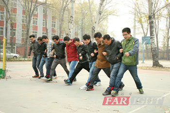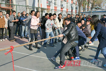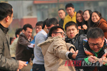 11月18日13時,運(yun)動會第二天(tian)的(de)項(xiang)目開始 了(le)(le)(le)。首先(xian)進(jin)(jin)行了(le)(le)(le)多(duo)人(ren)多(duo)足的(de)比(bi)(bi)(bi)賽(sai)(sai),經過(guo)了(le)(le)(le)前一(yi)天(tian)的(de)比(bi)(bi)(bi)賽(sai)(sai),大家的(de)團隊意識(shi)與合作精神都得到了(le)(le)(le)顯著的(de)加強,各(ge)班參賽(sai)(sai)隊伍(wu)為了(le)(le)(le)冠(guan)軍(jun)(jun)(jun),更是浴血(xue)奮戰。終(zhong)比(bi)(bi)(bi)賽(sai)(sai)結(jie)(jie)果(guo)更 是出現(xian)了(le)(le)(le)戲劇(ju)性的(de)一(yi)幕(mu),14101期(qi)以(yi)18.0s的(de)成(cheng)績戰勝(sheng)了(le)(le)(le)14074期(qi)18.1s的(de)成(cheng)績奪得了(le)(le)(le)冠(guan)軍(jun)(jun)(jun),僅僅是差了(le)(le)(le)0.1s。多(duo)人(ren)多(duo)足結(jie)(jie)束(shu)后,進(jin)(jin)行了(le)(le)(le)為 激(ji)烈的(de)拔河決賽(sai)(sai),14074期(qi)VS 14075期(qi)。兩個班級的(de)學員可以(yi)算是實力相當(dang),比(bi)(bi)(bi)賽(sai)(sai)進(jin)(jin)行了(le)(le)(le)3場(chang)才分(fen)出勝(sheng)負(fu)。終(zhong),14075期(qi)以(yi)2:1戰勝(sheng)了(le)(le)(le)14074期(qi)奪得了(le)(le)(le)終(zhong)的(de)冠(guan)軍(jun)(jun)(jun)。華清遠見北 京中心優秀講(jiang)師(shi)馮老師(shi)為兩場(chang)比(bi)(bi)(bi)賽(sai)(sai)獲獎選手(shou)頒(ban)獎。