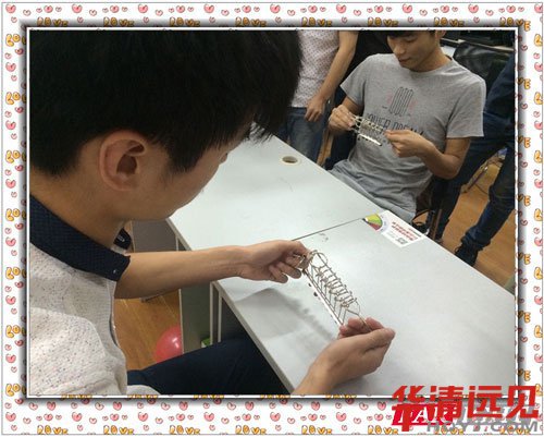 分好(hao)組(zu)(zu)之后就開始了(le)(le)第一個游戲(xi)(xi):巧手妙解九連環。先是由(you)任老師宣讀了(le)(le)游戲(xi)(xi)規則,接(jie)下來經過(guo)各(ge)小組(zu)(zu)商(shang)討推選出了(le)(le)參(can)賽人(ren)員,經過(guo)二十分鐘的(de)(de)激烈比拼(pin),終顏值爆表(biao)組(zu)(zu)奪(duo)得勝利,失敗組(zu)(zu)以演唱歌曲的(de)(de)形式進行(xing)了(le)(le)懲罰。