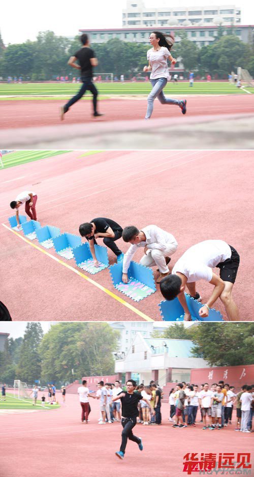 第二個游(you)戲是搶灘(tan)登陸。每(mei)個小(xiao)組都領到(dao)了(le)5張泡(pao)沫墊(dian),每(mei)組派出(chu)9位同學(xue)參(can)加。9名同學(xue)踩在(zai)5個泡(pao)沫墊(dian)上,從起點走到(dao)終點,時間短者勝出(chu)。游(you)戲中,如(ru)果小(xiao)組內有同學(xue)的腳踩在(zai)了(le)地(di)上,則(ze)受(shou)罰暫停10秒。