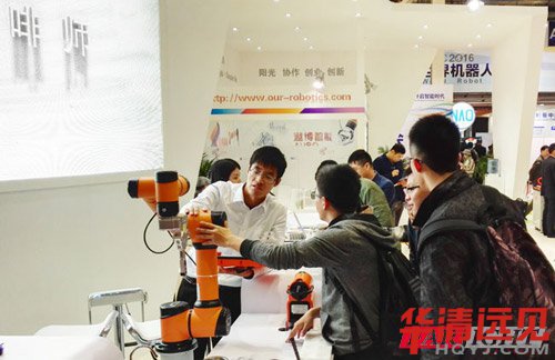 這邊(bian)的學員一(yi)進展廳就被一(yi)個機械手臂吸引(yin)了,幾位學員也和(he)展臺里的工作(zuo)人員攀談起技術(shu)細節來。