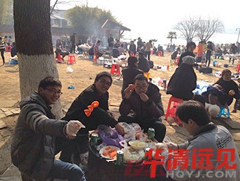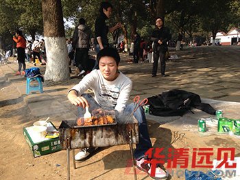 負責烤肉的同學,還真(zhen)(zhen)是專(zhuan)業,瞧,那架勢(shi)也不(bu)比咱武漢大(da)街小巷的專(zhuan)業烤串 師傅(fu)差呢(ni)。再(zai)來(lai)看看烤出來(lai)的成果(guo),色澤誘人、香味(wei)撲鼻(bi),忍(ren)不(bu)住來(lai)來(lai)嘗一口吧(ba),真(zhen)(zhen)心美味(wei)!大(da)家三五成群的圍坐在石桌附近(jin),享受著自己DIY的燒烤美食,了解 與青(qing)春有關的閑話,享受著冬日難得(de)的好陽光,非常的愜意(yi)!這(zhe)難得(de)的時光,真(zhen)(zhen)不(bu)舍得(de)讓它(ta)流逝(shi)而去!