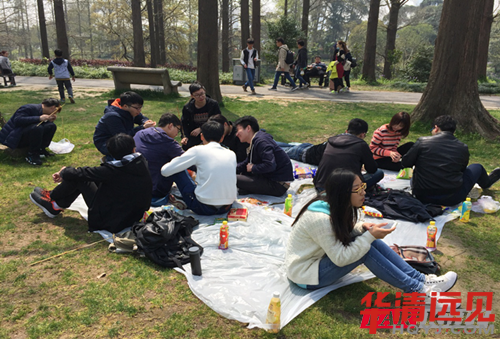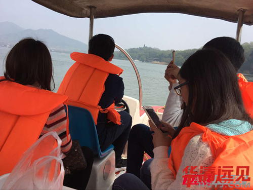 看(kan)完櫻花,當然也要順道來(lai)玄武(wu)湖劃個(ge)船(chuan)、玩個(ge)游戲啦~話不多(duo)說,先來(lai)張合影!背(bei)后有山(shan)有水,哈(ha)哈(ha) 咱們華清學子把(ba)遠處的山(shan)給擋住了!人比(bi)山(shan)高吶!