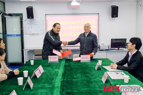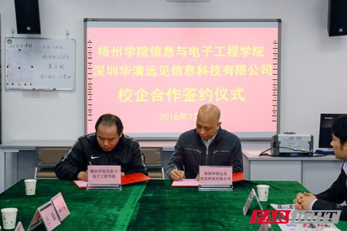 圖為:梧(wu)州學院(yuan)與華(hua)清遠見簽約洽談 2016年1月06日,深圳中(zhong)心華(hua)(hua)清遠見梁校長攜渠道經理劉老師(shi)及教務部(bu)張(zhang)老師(shi)前往梧(wu)州學院參(can)加簽(qian)約儀式。上(shang)午9時(shi)整,梧(wu)州學院信息與電子工程(cheng)學院和深圳中(zhong)心華(hua)(hua)清遠見教育科技集(ji)團就課程(cheng)共建、師(shi)資培訓、學生就業等多個方面與我中(zhong)心正式達成深度(du)校企合作協(xie)議。