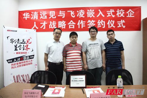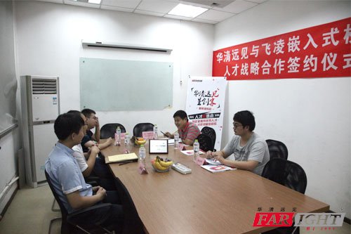 |   華清引鳳凰 飛凌棲梧桐——暨華清與飛凌嵌入式人才合作簽約儀式  時(shi)間:2016-07-15作者:華清(qing)遠見 火紅七月(yue),赤日(ri)炎(yan)炎(yan),由華(hua)清(qing)遠見教育科(ke)技集(ji)團主辦,品質保障部、市場部協辦的(de)校企(qi)人才(cai)(cai)戰略合(he)(he)作簽約儀式(shi)隆重舉(ju)行(xing)。此次活動于7月(yue)14日(ri)下午13:00在集(ji)團總部會議室進行(xing),參加會議的(de)有“星創客”精英班經(jing)理(li)(li)秦(qin)老師(shi)(shi)、企(qi)業合(he)(he)作經(jing)理(li)(li)王老師(shi)(shi)、就業袁(yuan)老師(shi)(shi),以及來自(zi)飛凌嵌入(ru)式(shi)的(de)研發部楊博(bo)經(jing)理(li)(li)、市場部(兼HR)欒經(jing)理(li)(li)。本著“為(wei)企(qi)業推薦人才(cai)(cai),為(wei)人才(cai)(cai)找尋(xun)伯(bo)樂(le)”的(de)原則(ze),雙方深入(ru)交(jiao)流,達成了合(he)(he)作意向,簽訂了人才(cai)(cai)戰略協議。