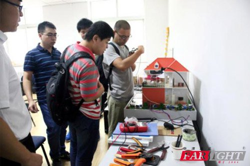 物聯網綜合實訓平臺 參(can)觀(guan)期間,北京中(zhong)心梁(liang)(liang)經理詢問了學生實習(xi)的很多細節(jie)。在梁(liang)(liang)經理和(he)秦老(lao)師的一(yi)問一(yi)答中(zhong),企業(ye)對(dui)華清遠見的項目實訓及(ji)研發實力有了更深入的了解。 問:“學員項(xiang)目教學時,這些項(xiang)目都要(yao)參(can)與(yu)研發嗎?” 答(da):“項(xiang)目教學(xue)(xue)期(qi)間(jian),我(wo)們會(hui)跟(gen)根據學(xue)(xue)員(yuan)的(de)選(xuan)擇,參與其(qi)中一項(xiang)或幾(ji)項(xiang)研發(fa),采用團隊作(zuo)戰的(de)模式,重(zhong)點(dian)鍛煉(lian)學(xue)(xue)員(yuan)研發(fa)的(de)能(neng)力。不(bu)僅要讓(rang)學(xue)(xue)員(yuan)知(zhi)道怎(zen)么研發(fa),還要讓(rang)學(xue)(xue)員(yuan)懂得為什么這(zhe)樣做,培養學(xue)(xue)員(yuan)在項(xiang)目中發(fa)現問題(ti)(ti)、分析問題(ti)(ti)、解決(jue)問題(ti)(ti)的(de)綜(zong)合能(neng)力,同時也鍛煉(lian)了學(xue)(xue)員(yuan)的(de)團隊意識,為學(xue)(xue)員(yuan)進入企業奠定堅實的(de)基礎。” 問:“這(zhe)些項目都是華清(qing)自(zi)主研發的(de)嗎(ma)(ma)?你們的(de)產品(pin)面(mian)向市(shi)場嗎(ma)(ma)?” 答:“是的(de)(de)(de)(de),這(zhe)(zhe)些(xie)研(yan)(yan)發(fa)(fa)項(xiang)目100%都(dou)是我們(men)自主研(yan)(yan)發(fa)(fa)設計的(de)(de)(de)(de),我們(men)的(de)(de)(de)(de)研(yan)(yan)發(fa)(fa)中心匯聚了(le)一批嵌(qian)入(ru)(ru)式行業專家和(he)資深(shen)的(de)(de)(de)(de)開(kai)發(fa)(fa)人員(yuan),立足于嵌(qian)入(ru)(ru)式技術、移動開(kai)發(fa)(fa)技術和(he)物(wu)聯網技術的(de)(de)(de)(de)應用與開(kai)發(fa)(fa)以及實驗(yan)(yan)(yan)(yan)平臺(tai)的(de)(de)(de)(de)研(yan)(yan)發(fa)(fa)。自主研(yan)(yan)發(fa)(fa)的(de)(de)(de)(de)教學(xue)實驗(yan)(yan)(yan)(yan)平臺(tai)可以更(geng)好地滿足培訓課程體系的(de)(de)(de)(de)需要。實驗(yan)(yan)(yan)(yan)平臺(tai)應用范圍廣、功能強,得到了(le)眾多(duo)企業和(he)高校(xiao)用戶的(de)(de)(de)(de)好評。這(zhe)(zhe)邊這(zhe)(zhe)些(xie)就(jiu)是了(le),有Andrid開(kai)源平板(ban)試驗(yan)(yan)(yan)(yan)箱、REID射(she)頻識別(bie)教學(xue)實驗(yan)(yan)(yan)(yan)箱、ARM微(wei)控制(zhi)教學(xue)實驗(yan)(yan)(yan)(yan)箱、嵌(qian)入(ru)(ru)式ARM實驗(yan)(yan)(yan)(yan)箱、物(wu)聯網綜合實驗(yan)(yan)(yan)(yan)箱等50多(duo)套(tao)實驗(yan)(yan)(yan)(yan)設備。” ……