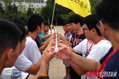 為(wei)了(le)增強學生(sheng)的(de)團隊凝聚力(li),培(pei)養學生(sheng)的(de)團隊精神(shen),提高(gao)學生(sheng)的(de)溝通(tong)能(neng)力(li),2016年7月27日(ri),華清(qing)遠見濟(ji)南(nan)中心(xin)在(zai)齊魯軟(ruan)件園廣場成功(gong)舉行了(le)16071班學生(sheng)戶外拓展訓(xun)練(lian)。本次活動由(you)班主(zhu)任王老師擔任教練(lian),中心(xin)李校長及部(bu)分老師也(ye)一同參加了(le)這次特殊意義的(de)拓展訓(xun)練(lian)活動。