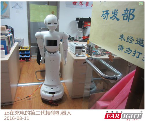 公司所在地 芯合科技,位(wei)于(yu)著(zhu)名的(de)硅谷-中關村(cun),具體的(de)辦公(gong)地點(dian)在(zai)中關村(cun)創業(ye)大廈。他(ta)們(men)一行兩人在(zai)HR胡(hu)主管(guan)的(de)帶領下,走進公(gong)司(si)接待(dai)室,此時(shi),研(yan)(yan)發(fa)中心(xin)吳經(jing)理早已在(zai)接待(dai)室等候。簡單的(de)寒暄過(guo)后,首先,胡(hu)主管(guan)對芯合科技公(gong)司(si)情況做(zuo)了(le)比較全面的(de)介(jie)紹,然后吳經(jing)理詳細為他(ta)們(men)介(jie)紹了(le)公(gong)司(si)自主研(yan)(yan)發(fa)的(de)機器人技術(shu)。當(dang)然,除此之(zhi)外還有舵機、驅動器和機械臂,吳經(jing)理都分別做(zuo)了(le)闡述。他(ta)表示之(zhi)前通過(guo)朋友(you),對華清的(de)學員(yuan)有過(guo)了(le)解,技術(shu)很不錯,希(xi)望(wang)有學員(yuan)可以加入到公(gong)司(si)機器人的(de)研(yan)(yan)究方向(xiang)。 雖然(ran)是創業(ye)公司,但芯合科技技術水平(ping)不低,在講到機器人(ren)人(ren)臉識(shi)別時,胡經理笑(xiao)稱:“我(wo)們的gubao技術很全(quan)面,還可(ke)(ke)以認識(shi)研(yan)發的全(quan)部人(ren)員(yuan),現在是公司不可(ke)(ke)或(huo)缺的一員(yuan)。” (注:gubao是機器人(ren)的(de)名字) 當被問(wen)及gubao的(de)主要工作時,她解釋說:“gubao是服務型(xing)機器人,主要用于服務接待(dai),近太累(lei)了,現在還(huan)在充電,下次過來還(huan)可以讓gubao接待(dai)你們。 同時(shi)歡迎星創客到(dao)企業參(can)觀,屆(jie)時(shi)gubao應(ying)該(gai)可以參(can)與(yu)接待了。 ” 交(jiao)流過后,兩位老師(shi)對研發中心進行了參觀。首先映入眼(yan)簾的(de)便是這個發型時髦、衣著另類(lei)的(de)摩登(deng)機器(qi)(qi)人。一(yi)問才知道,她是退(tui)役的(de)第一(yi)代機器(qi)(qi)人。雖然已經(jing)退(tui)役,但(dan)仍(reng)然在發揮(hui)余熱,充當“監視(shi)器(qi)(qi)”的(de)角色,瞧那兩個大(da)“眼(yan)睛”還在忽(hu)閃忽(hu)閃的(de)亮著。