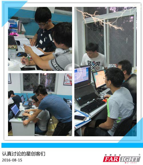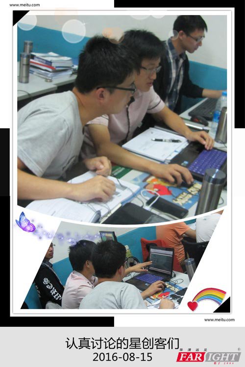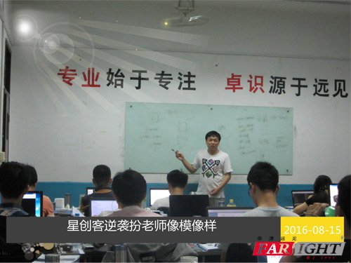 夜,總能過濾掉白天的些許(xu)浮躁,留下片(pian)片(pian)沉靜(jing)!夜幕(mu)下,燈(deng)光照(zhao)亮了教室,透過窗子落在(zai)樓(lou)下操(cao)場(chang)上,站在(zai)操(cao)場(chang)正中,可以聽到教室稀(xi)(xi)稀(xi)(xi)疏疏耳語聲,時(shi)大(da)時(shi)小(xiao),那是(shi)…… 8月15日晚自習(xi)21點,第二期星創客教室人依然(ran)滿滿當當的(de)。按照(zhao)常例,10點鐘老師會(hui)要求學(xue)(xue)員(yuan)們回宿舍休息,而有的(de)學(xue)(xue)員(yuan)卻表現的(de)精力十足,學(xue)(xue)習(xi)到子夜方歸(gui)。不(bu)要問為(wei)什(shen)么,或許只有身在其中的(de)他們才(cai)能(neng)更好的(de)體(ti)會(hui)。這是怎樣的(de)一幅畫面,相信今天(tian)的(de)汗(han)水,必將(jiang)化作明天(tian)的(de)收獲。