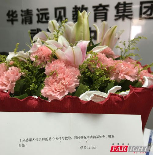 周一(yi)早上來上班(ban),武漢華清遠(yuan)見的老師們就收(shou)到驚(jing)喜了(le)(le)(le)!啥驚(jing)喜呢(ni)?原來一(yi)個剛(gang)剛(gang)畢業(ye)的老學(xue)員特意遠(yuan)程預(yu)定了(le)(le)(le)一(yi)束鮮(xian)花送過來了(le)(le)(le)!好暖心!好開森呀!