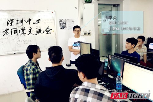 圖為(wei):丁學(xue)長為(wei)大家(jia)分(fen)享學(xue)習經驗 首先(xian)學(xue)(xue)員們以雷鳴(ming)般的(de)(de)(de)(de)掌聲感謝在百忙中來到華清(qing)遠見深圳中心的(de)(de)(de)(de)丁學(xue)(xue)長以及趙師兄,首先(xian)丁學(xue)(xue)長為學(xue)(xue)員們分享他的(de)(de)(de)(de)成功之道:1.天下事必有(you)簡易(yi)方法。2.做喜(xi)歡的(de)(de)(de)(de)事忘掉煩惱與憂愁。丁學(xue)(xue)長鼓(gu)勵大家要尋找自己(ji)適合的(de)(de)(de)(de)簡便方法,學(xue)(xue)習捷徑。比如:模仿是快(kuai)的(de)(de)(de)(de)捷徑,編程(cheng)就好像呀呀學(xue)(xue)語(yu)。模仿別人(ren)的(de)(de)(de)(de)編程(cheng)語(yu)言去改寫自己(ji)需要的(de)(de)(de)(de)程(cheng)序,不僅(jin)(jin)發(fa)現自己(ji)的(de)(de)(de)(de)編程(cheng)問題也(ye)能快(kuai)速(su)的(de)(de)(de)(de)了解別人(ren)的(de)(de)(de)(de)思路(lu)。這樣不僅(jin)(jin)更(geng)快(kuai)地學(xue)(xue)習編程(cheng)也(ye)更(geng)加理解每一個(ge)項目(mu)從而取得高(gao)薪,學(xue)(xue)員紛(fen)紛(fen)點頭稱贊,表示(shi)棋高(gao)一籌。