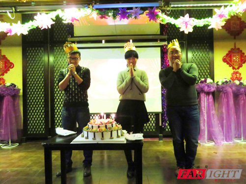 |   舊歲已展千重錦,新年再進百尺竿——西安中心年會盛典  時間:2017-01-20作者:華(hua)清遠見 時(shi)光(guang)飛逝,歲月如梭,轉眼(yan)間忙碌的2016年已過去,充滿期待的2017向我們走來。2017年1月13日,西(xi)安中心(xin)全體員工齊(qi)聚一(yi)堂,共度(du)聯歡,年會(hui)盛(sheng)典正式(shi)敲響(xiang)! 回首2016我(wo)們歡(huan)歌笑語,砥礪前行,不斷挑(tiao)戰自我(wo)。展望2017我(wo)們信心滿(man)滿(man),激(ji)情四射(she)。 年會(hui)開始前,大家(jia)首先為(wei)1月生(sheng)日的同事慶生(sheng),希望他們(men)天(tian)天(tian)開心(xin),事事如(ru)意,生(sheng)日快樂!壽星們(men)雙手(shou)合十,緊(jin)閉雙眼,許下新年心(xin)愿。