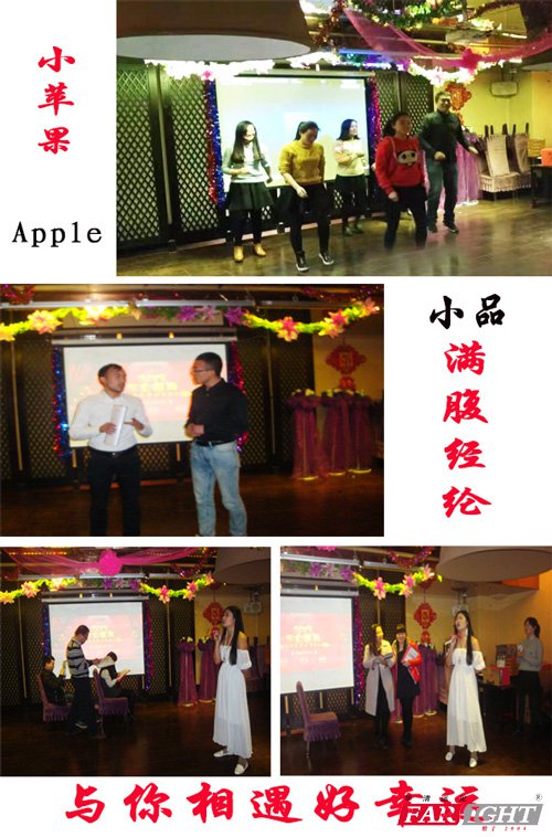 此次聯歡會各部(bu)門帶(dai)來(lai)了(le)形式各異(yi)、讓人目不(bu)(bu)暇接的表演。有舞蹈(dao)、小品、相聲、合唱、舞臺劇等(deng)節目,五彩(cai)紛呈,中間還穿(chuan)插了(le)抽(chou)獎(jiang)(jiang)環(huan)節,隨著歡樂(le)獎(jiang)(jiang)、三等(deng)獎(jiang)(jiang)、二等(deng)獎(jiang)(jiang)、一等(deng)獎(jiang)(jiang)、特等(deng)獎(jiang)(jiang)的抽(chou)取,年會不(bu)(bu)斷的被帶(dai)進高潮(chao)。 年會不僅僅給(gei)大(da)家帶來了歡(huan)聲(sheng)笑(xiao)語,同(tong)(tong)時也讓同(tong)(tong)事之間的心(xin)更加(jia)貼近,歌聲(sheng)、掌(zhang)聲(sheng)、歡(huan)呼聲(sheng)一直在會場蕩(dang)漾。整個年會的氣氛跌(die)宕起伏,高潮不斷,呈現華清這個大(da)家庭的歡(huan)樂與和(he)諧(xie)。