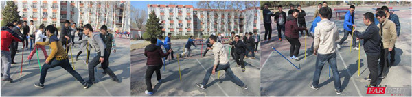 此項活動鍛煉極其鍛煉大家的團隊意識,一人落桿,全隊遭殃!好在各位隊長都能沉得住氣,撐得住場子,“一、二、三,走……”整齊的指令下看到的卻是“該倒就倒”