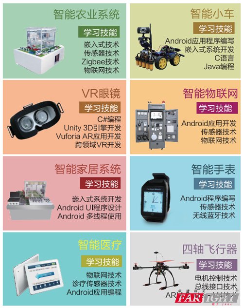 看,我(wo)們研發中心的工程師,正(zheng)親身體驗智能(neng)(neng)家居+VR系(xi)統功能(neng)(neng)呢! 一、什么是智能家居+VR系統? 智能家(jia)(jia)居系統通(tong)過物聯網技(ji)術將(jiang)家(jia)(jia)中(zhong)的各種(zhong)設備(bei)連接到(dao)一起,提供家(jia)(jia)電控(kong)制、照(zhao)明控(kong)制、防盜報(bao)警、環境監測(ce)等(deng)多種(zhong)功(gong)能和手段。與普通(tong)家(jia)(jia)居相比,智能家(jia)(jia)居不僅具有傳統的居住功(gong)能,兼備(bei)建筑、網絡通(tong)信(xin)、信(xin)息家(jia)(jia)電、設備(bei)自動化,提供全(quan)方位的信(xin)息交互功(gong)能,甚(shen)至能為各種(zhong)能源費(fei)用節約資金(jin)。 華清遠(yuan)見自主研發(fa)的(de)(de)智(zhi)能(neng)(neng)(neng)家居+VR系(xi)統,采(cai)用(yong)微信公(gong)眾號、Android APP以及VR三種控制(zhi)模式,能(neng)(neng)(neng)夠(gou)使學生(sheng)充分(fen)理解(jie)并應用(yong)嵌入式/物聯(lian)網技術,同時(shi)對(dui)(dui)VR技術進行初步(bu)的(de)(de)了解(jie)和(he)認識,從而激發(fa)學生(sheng)對(dui)(dui)智(zhi)能(neng)(neng)(neng)硬件的(de)(de)興趣,培(pei)養學生(sheng)創(chuang)新應用(yong)能(neng)(neng)(neng)力(li)。 二、項目所實現的功能有哪些? 1、智(zhi)能家電控制系統:控制電視、空調、熱水器(qi)等家電設備(bei); 2、智能窗簾控(kong)制系(xi)統:控(kong)制窗簾的開合; 3、遠(yuan)程視頻(pin)監(jian)控系統(tong):通過遠(yuan)程視頻(pin)實(shi)時查(cha)看家中狀態; 4、智能燈光控制系(xi)統:控制各個房間的燈的開關; 5、門禁系統:可以通過刷(shua)卡或指紋(wen)的方(fang)式打開房門; 6、語音(yin)識(shi)別控(kong)制系統(tong):通過(guo)發出語音(yin)指(zhi)令達到控(kong)制室(shi)內各個系統(tong)的功(gong)能; 7、環境監(jian)(jian)測(ce)系統:實時(shi)監(jian)(jian)測(ce)室(shi)內pm2.5濃度(du)、光照(zhao)強度(du)、空氣溫濕(shi)度(du)及煤氣泄漏監(jian)(jian)測(ce); 8、報警(jing)系統:如有人員(yuan)入侵或環(huan)境參數超(chao)標,可通過聲光報警(jing)器報警(jing),同時發送短信給房主。 有視頻有真相,看看華清研發工程師(shi)都說(shuo)了什(shen)么(me)! 三、同學們能夠學習到哪些技術點? 1、Android應用程(cheng)序(xu)設計(ji) 2、Web服務器(qi) 3、本地服務器、外網服務器的搭建(jian)使(shi)用 4、SQL server數據庫(ku)的使(shi)用(yong) 5、微(wei)信公眾(zhong)號對硬件的控制 6、STM32F103設計開發(fa) 7、藍牙無線(xian)傳(chuan)輸 8、IPV6無線(xian)傳輸 9、WiFi無線傳輸 10、傳感器技(ji)術 11、VR虛擬(ni)現(xian)實(shi)控制 12、Zigbee無(wu)線傳輸 …… 除此之(zhi)外,華清遠見自(zi)主(zhu)研(yan)發(fa)的實訓項目還有智(zhi)能小車、倉儲物聯網系統、四軸(zhou)飛行器、智(zhi)能醫(yi)療系統、智(zhi)能農業(ye)系統、智(zhi)能手環、智(zhi)能手表(biao)、智(zhi)能機頂盒、開源(yuan)平板電(dian)腦等(deng)10余(yu)款,并已(yi)經廣泛到教學(xue)環節,自(zi)主(zhu)研(yan)發(fa)實驗設備(bei)達50余(yu)套!