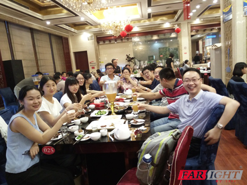 企業文化篇 濟(ji)南華清(qing)遠(yuan)見的發展,離不開每位(wei)員(yuan)工的辛勤付出,企業(ye)為了豐富員(yuan)工的業(ye)余生活,經常(chang)組織一(yi)些集體活動,展現團(tuan)隊(dui)風采,凝聚團(tuan)隊(dui)力量,通過活動增(zeng)加企業(ye)與員(yuan)工之(zhi)間的相互交流(liu),促(cu)進(jin)企業(ye)發展。 2016年7月,第一次員工聚餐。(季久峰(feng)總裁第一次蒞臨濟南中心(xin))