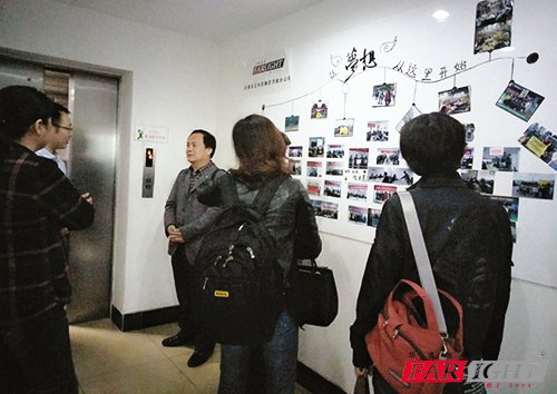 儀式(shi)開始前,濟南中(zhong)心(xin)高校合作部孫(sun)經理(li)帶領劉主任等老(lao)師(shi)(shi)先參觀了(le)中(zhong)心(xin)企業(ye)(ye)文化墻(qiang)、項目案(an)例實(shi)驗室、研發(fa)中(zhong)心(xin)、崗前實(shi)訓室、職業(ye)(ye)素(su)養訓練室、課程研發(fa)實(shi)驗室等,并(bing)到教室聆(ling)聽(ting)了(le)講師(shi)(shi)授課情況(kuang)。隨后德州(zhou)學院(yuan)劉院(yuan)長和其(qi)(qi)他幾位老(lao)師(shi)(shi)與在中(zhong)心(xin)就(jiu)讀的(de)德州(zhou)學院(yuan)學生(sheng)做(zuo)了(le)交流,深入了(le)解其(qi)(qi)就(jiu)業(ye)(ye)及(ji)學習情況(kuang)。