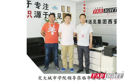 |   西安華清與交大城市學院校企合作 資源互用互惠共贏  時間:2017-05-31作者:華清(qing)遠見 西安華清遠見全體同仁不忘初心(xin),砥礪前行,和(he)眾多高等院校(xiao)強強聯手(shou),優勢(shi)互補,讓同學(xue)們在校(xiao)所學(xue)理論知識和(he)項目實(shi)戰充(chong)分結(jie)合,培養出滿足企業(ye)需求的(de)人才,減少學(xue)生的(de)就業(ye)壓力。 5月(yue)18日,為(wei)進一步明確高校教(jiao)育人才培養目標,加深學校對我們華(hua)清(qing)(qing)遠見教(jiao)育科技(ji)集(ji)團西安中(zhong)心(xin)產品和項目的(de)了解,深入了解我中(zhong)心(xin)發展情況,交(jiao)通(tong)大(da)學城市學院張永超老(lao)師蒞臨華(hua)清(qing)(qing)遠見實地考察(cha)。