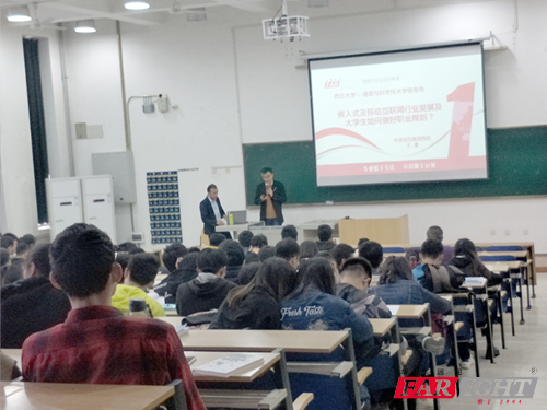為了幫(bang)助同學(xue)(xue)(xue)們(men)(men)了解目(mu)前行業(ye)的新動(dong)(dong)態從而幫(bang)助他們(men)(men)更好(hao)的規劃(hua)自(zi)己的學(xue)(xue)(xue)業(ye)與(yu)職業(ye),2017年(nian)10月23日(ri),西(xi)北大(da)(da)學(xue)(xue)(xue)特邀(yao)請華清遠見的老師們(men)(men),為西(xi)北大(da)(da)學(xue)(xue)(xue)信息科(ke)(ke)學(xue)(xue)(xue)與(yu)技(ji)術學(xue)(xue)(xue)院的計算機(ji)科(ke)(ke)學(xue)(xue)(xue)與(yu)技(ji)術、電子信息工程、物聯(lian)網工程、電子科(ke)(ke)學(xue)(xue)(xue)與(yu)技(ji)術、微電子等專業(ye)大(da)(da)二(er)學(xue)(xue)(xue)生共400余(yu)人,舉辦(ban)了以嵌入式和移動(dong)(dong)互聯(lian)網行業(ye)發展及大(da)(da)學(xue)(xue)(xue)生職業(ye)規劃(hua)為主題的講座。