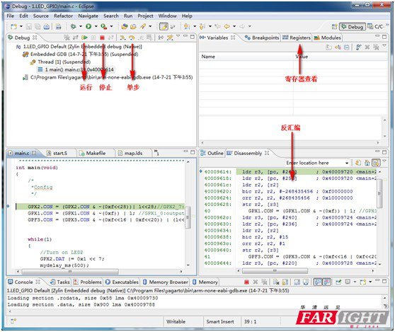 仿真FS4412開發板,實現單步、斷點、查詢等功能 |