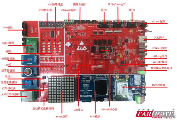 學習工(gong)作中一(yi)直(zhi)在使用samsung芯片,從ARM9的(de)(de)s3c2410、s3c2440,ARM11的(de)(de)s3c6410、Cortex-A8的(de)(de)s5pv210,Cortex-A9的(de)(de)exynos4412,每個CPU都是(shi)主(zhu)流的(de)(de)芯片,samsung芯片一(yi)直(zhi)是(shi)資源比較多(duo)的(de)(de)平(ping)臺(tai)。用慣了32位處理器,而當下進入了64位處理器的(de)(de)時代,隨(sui)即想(xiang)到找個samsung的(de)(de)64bit CPU來學習下。選擇一(yi)個學習平(ping)臺(tai)要綜合考慮,既(ji)要資源豐富又要穩定應用廣泛。 通(tong)過(guo)了解鎖定(ding)了samsung 的(de)S5P6818,這款芯片是(shi)Cortex-A53架構、64bit處(chu)理器,且有pin to pin兼容的(de)Cortex-A9 架構的(de)S5P4418可以應用(yong)于(yu)多(duo)種場合滿足不同(tong)需求。市面上有很(hen)多(duo)使用(yong)這款芯片的(de)板子,通(tong)過(guo)綜(zong)合對比終確定(ding)選擇華(hua)清遠見(jian)的(de)產(chan)品(pin),但(dan)是(shi)在(zai)同(tong)時(shi)推(tui)出(chu)的(de)兩款產(chan)品(pin)之間(jian)猶豫不定(ding)。 華清(qing)遠(yuan)見提(ti)供了(le)兩種學習平臺(tai),一種是綜合(he)實(shi)驗(yan)箱FS_6818B,板(ban)載資源(yuan)比較多(duo),可(ke)供實(shi)驗(yan)的例程多(duo),可(ke)適合(he)物(wu)聯(lian)網和嵌入式專業的深度(du)研究(jiu)和相關(guan)產品的開發。