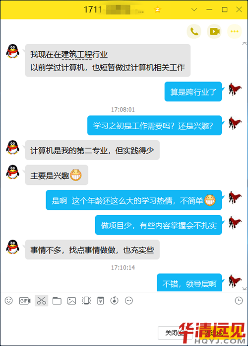 徐*軍,70后大叔一枚(mei),工(gong)作中(zhong)(zhong)負(fu)責BIM咨(zi)詢、數據(ju)中(zhong)(zhong)心(xin)(xin)管理,坐(zuo)標長(chang)沙,93年畢業于南方冶金(jin)學(xue)院,現在的江(jiang)西理工(gong)大學(xue),礦業工(gong)程(cheng)(cheng)(cheng)(cheng)專業,工(gong)程(cheng)(cheng)(cheng)(cheng)項目中(zhong)(zhong)機械之王盾構機的機載(zai)監(jian)控(kong)(kong)中(zhong)(zhong)心(xin)(xin)是(shi)由(you)嵌入式(shi)機載(zai)監(jian)控(kong)(kong)系統組(zu)成,遠程(cheng)(cheng)(cheng)(cheng)監(jian)控(kong)(kong)與診(zhen)(zhen)斷中(zhong)(zhong)心(xin)(xin)負(fu)責監(jian)控(kong)(kong)、預警、 遠程(cheng)(cheng)(cheng)(cheng)故障診(zhen)(zhen)斷,對工(gong)程(cheng)(cheng)(cheng)(cheng)建設起到非凡意義。工(gong)作中(zhong)(zhong)接(jie)觸到嵌入式(shi)技(ji)術產(chan)生(sheng)(sheng)濃厚(hou)興趣,在人生(sheng)(sheng)接(jie)近50歲(sui)時選擇加(jia)入華清遠見創客學(xue)院嵌入式(shi)課程(cheng)(cheng)(cheng)(cheng),126天完成全部課程(cheng)(cheng)(cheng)(cheng)學(xue)習。