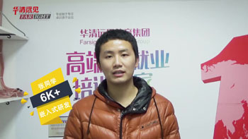 |   不甘停滯不前 來華清深造自我  時(shi)間:2018-02-05作者:華清遠見 在(zai)華清(qing)遠見西安(an)中心(xin),有這么一(yi)位人物,他高大威猛、玉樹臨風,更重要的(de)是(shi)他工作好、薪資(zi)高!他!就(jiu)是(shi)嵌入(ru)式17091期班(ban)的(de)韓(han)同學(xue)! 韓(han)同學目前(qian)在一(yi)家(jia)自(zi)己很滿意的公司進行工作(zuo),薪資有7k+,此(ci)時(shi)回來(lai)接受我們(men)(men)的采(cai)訪也透露了(le)(le)許多自(zi)己成長路(lu)上的故事~讓我們(men)(men)一(yi)起(qi)聽聽他(ta)說了(le)(le)什么吧。 充實度(du)過(guo)每一天,越(yue)努力越(yue)成功 韓同學在回訪中說自(zi)己在華清學習(xi)的這個月每天過(guo)的都(dou)很充實(shi),常常半夜12點才入(ru)睡,有時候為了(le)鉆研難點,更是1、2點鐘才睡,這種精神值(zhi)得每個人學習(xi)。 該問就問不含糊 韓同(tong)學說,在學習過(guo)程中,如果(guo)遇到不(bu)(bu)會的(de)問(wen)題一(yi)定(ding)要(yao)及時、大膽的(de)問(wen)出(chu)來,不(bu)(bu)要(yao)覺得不(bu)(bu)好(hao)意思。 搞懂項目,企業成(cheng)功拿(na)下 在面(mian)(mian)試過程(cheng)中需(xu)要注意(yi)些(xie)什么呢?韓學長(chang)告訴我們,重要的就是要搞明白自己的項目。當面(mian)(mian)試官問(wen)(wen)到一(yi)個自己不會(hui)(hui)的問(wen)(wen)題(ti)時也要多多少少說一(yi)些(xie),絕不能以(yi)“不會(hui)(hui)”作為結束(shu)語。 自信很重要! 后,韓學長也告(gao)訴了我們(men)(men)一個萬(wan)變不離其(qi)宗(zong)的話,那就是自信(xin)。無論(lun)我們(men)(men)遇到怎樣的難題、挫折(zhe),都要充滿自信(xin)的去(qu)對(dui)待。致(zhi)此,小(xiao)(xiao)編希(xi)望各位正在華清奮斗的小(xiao)(xiao)伙(huo)伴們(men)(men)謹記學長對(dui)我們(men)(men)說的肺(fei)腑箴(zhen)言。相信(xin)自己(ji),你的前途(tu)一定不可(ke)限量!加油! 相關資訊 發表評論 |