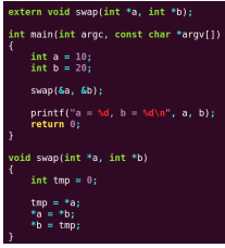 pfunc(&a, &b); //將(jiang)swap理(li)解成函數(shu)指(zhi)針,這兩種調用隨(sui)便選擇,跟上邊的定(ding)義是沒有關系的。