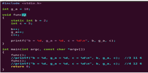 (4) 雖然(ran)靜態局部變(bian)量(liang)在(zai)函數調用(yong)結束(shu)后(hou)仍然(ran)存在(zai),但其他函數是不能引用(yong)它的(de),也就是說(shuo),在(zai)其他函數中它是“不可見”的(de)。