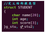 例: struct student student = {"zhangsan", 1, 15, 59.9};