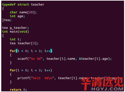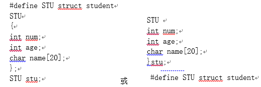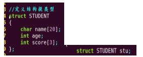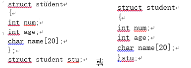 例:struct student stu[] = {"zhangsan", 1, 15, "lishi", 0, 16};