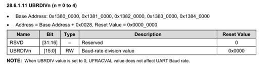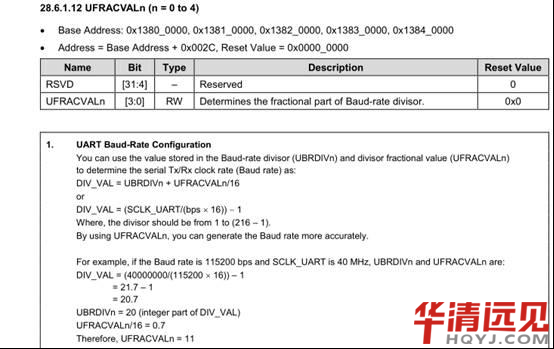 公式:DIV_VAL = (SCLK_UART/(bps *16))- 1 芯片手冊上(shang)有