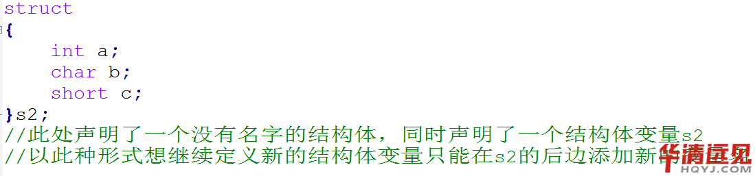 這里(li)struct為結構體關鍵字,一(yi)般情(qing)況下,結構體名、成員列表和(he)結構體變量名列表這三部分(fen)至(zhi)少要出現2個,以示例解釋: 1.